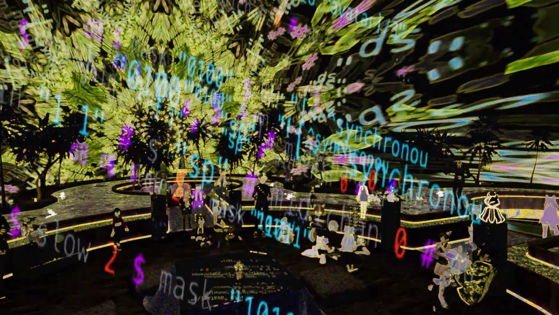 In this live set, I write and manipulate code to sequence original house music compositions. I performed this work live several times in 2024 including for LiveCodeNYC, Raindance Immersive, and various virtual reality venues. It is an experiment with the synchronous, how the code of computation and network link our bodies like the beat in a club.